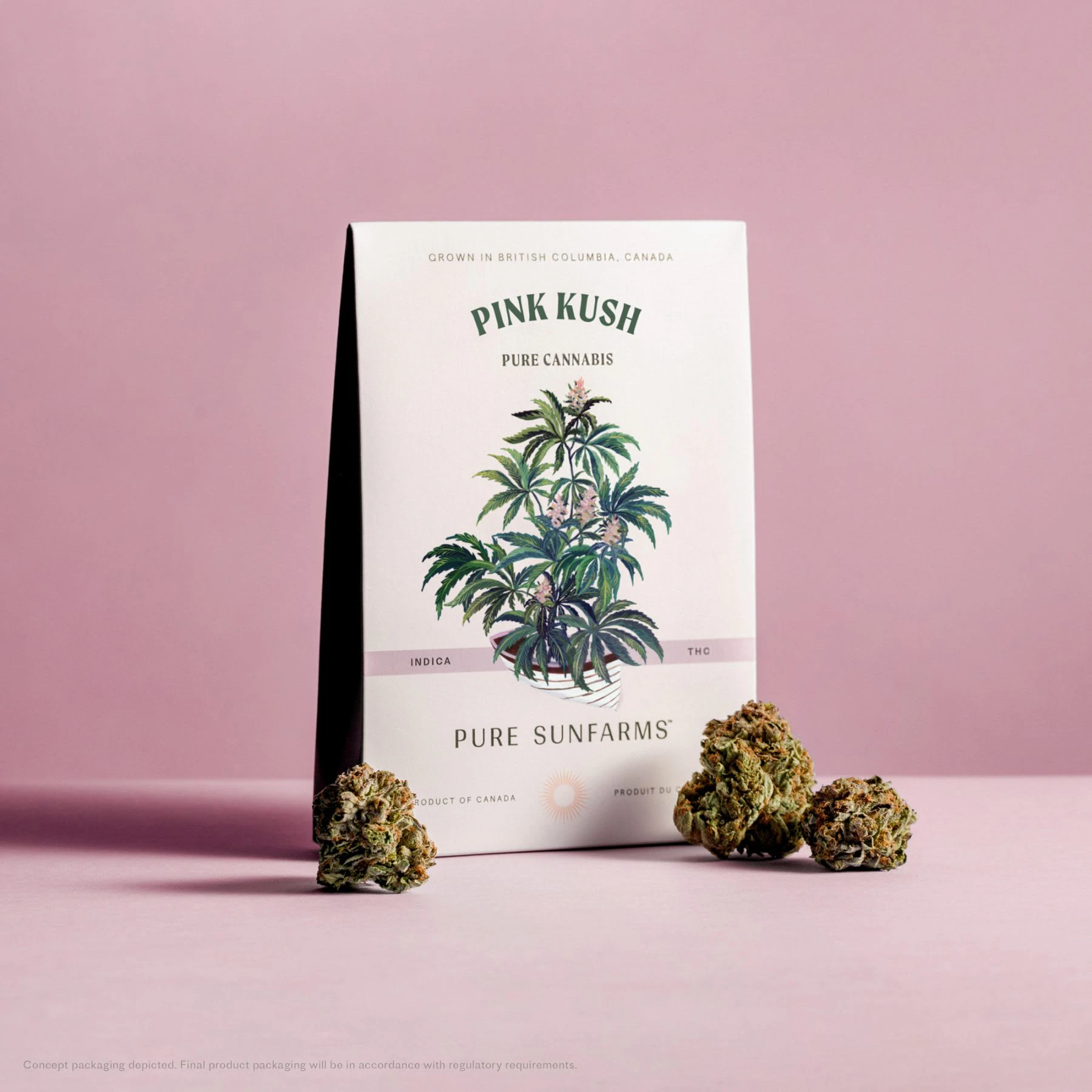 Pure Sunfarms' cut of Pink Kush from BC's Vancouver Island is a coastal relative of the legendary OG Kush. This special strain is beloved across Canada for its strong aromas, colourful flowers, and high THC potential. Beneath a thick coating of trichomes, the dense and round buds feature forest green leaves, often with a purple hue, mixed with dark amber pistils. Grown in a high-tech greenhouse in the Fraser Valley, each bud is carefully trimmed and hand-groomed, dried and cured to precise standards. Pink Kush showcases gassy aromas of white pepper, orange, butterscotch, coffee, earth, and grapefruit, the result of a rich combination of terpenes that includes caryophyllene, myrcene, humulene, bisabolol, and limonene.